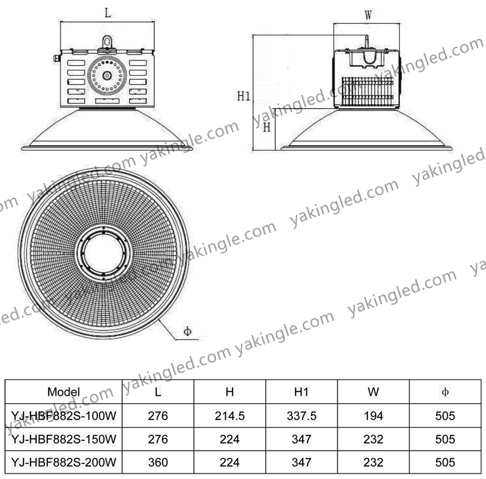| YJ-HBF882S-150W | 150W | 15700-17200LM | 276*232*347mm |